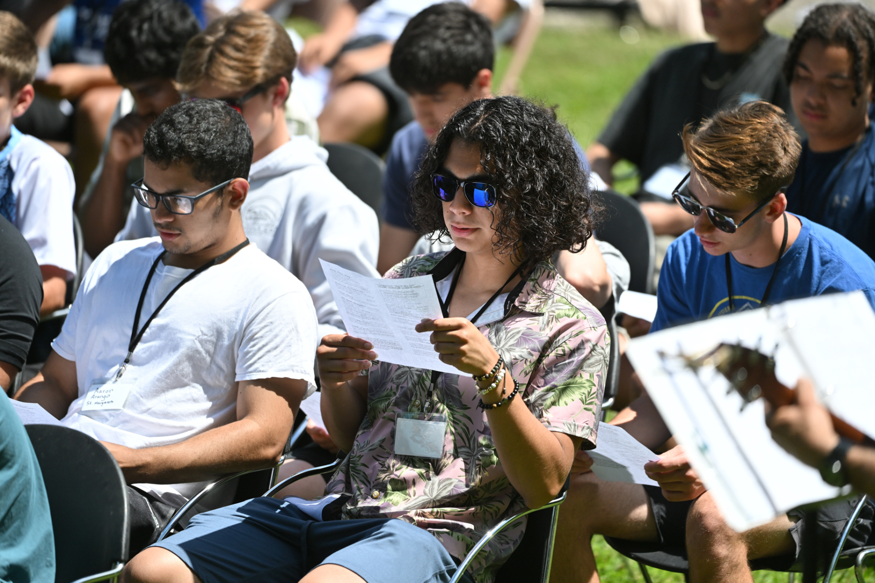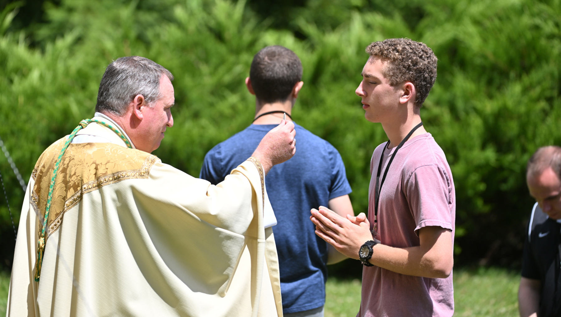 That day, Bishop Kevin J. Sweeney and participating priests and seminarians helped teach these young men how to discover their vocation — married, religious, or single. Participants explored God’s call during a busy schedule of spiritual, athletic, and social activities. The religious offerings included group prayer, an outdoor Mass with Bishop Sweeney, and adoration of the Blessed Sacrament.