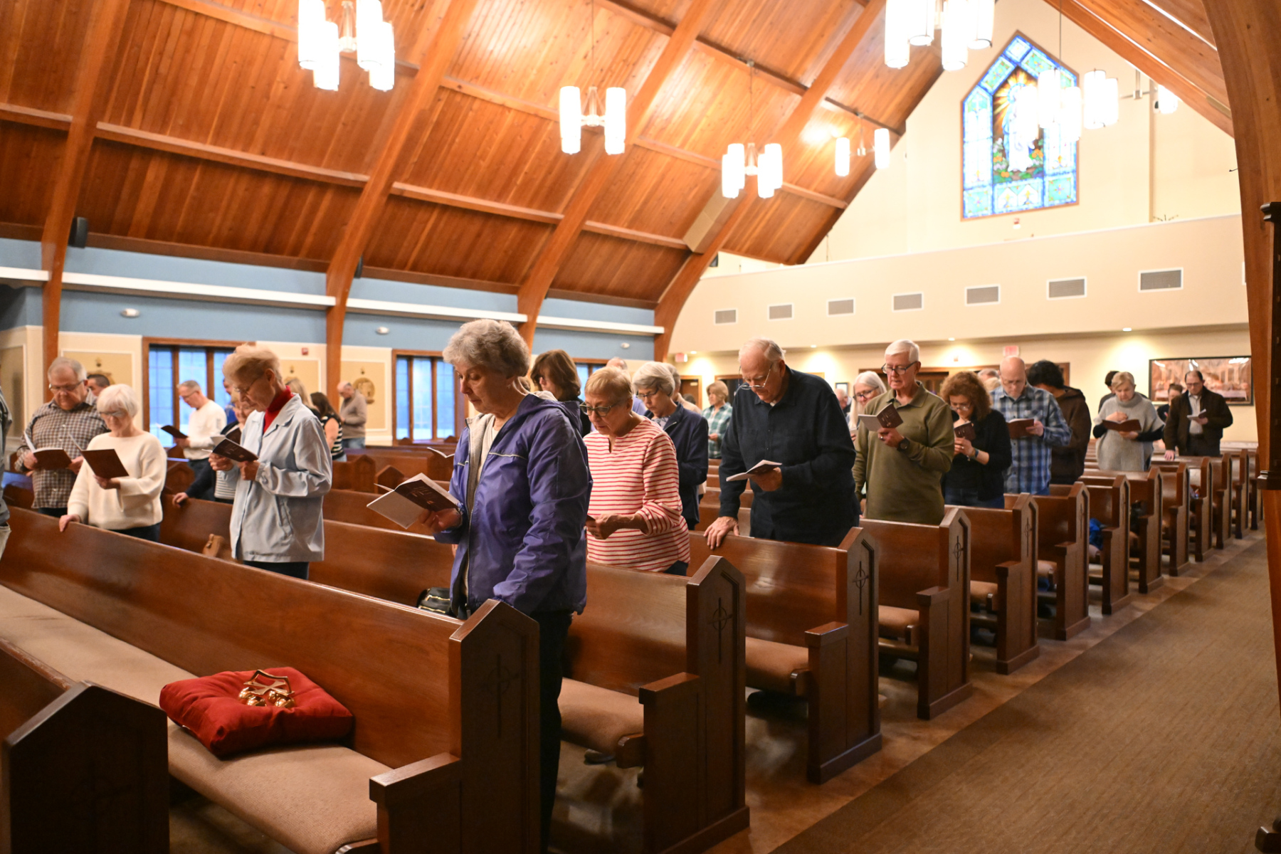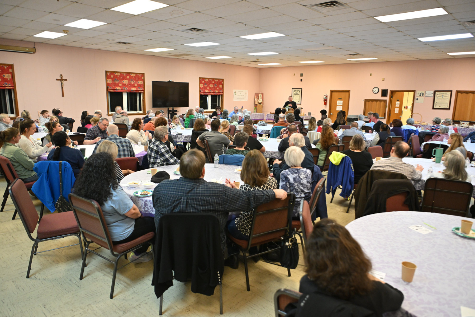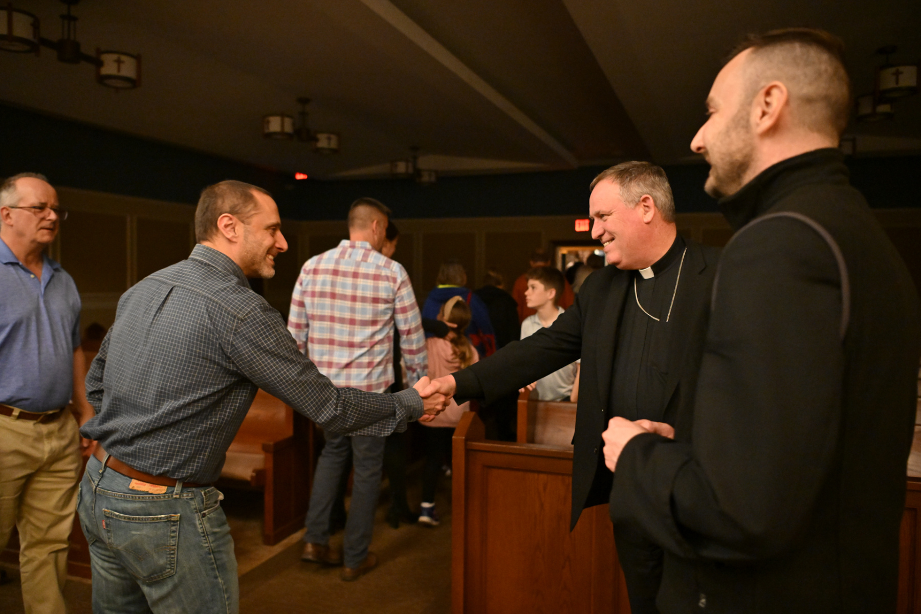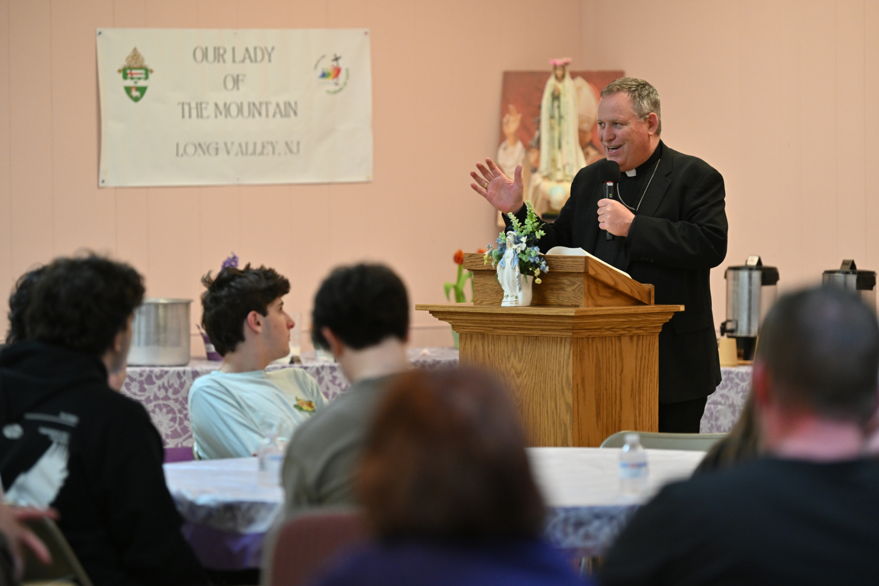 On the evening of March 11, Bishop Kevin J. Sweeney led Our Lady of the Mountain (OLM) Parish in the Long Valley neighborhood of Washington Township, N.J., in the Stations of the Cross in the church. A Lenten reflection by Bishop Sweeney and a bread and soup dinner followed the Stations of the Cross. Father Marcin Michalowski, OLM’s pastor, also participated in the Lenten event.