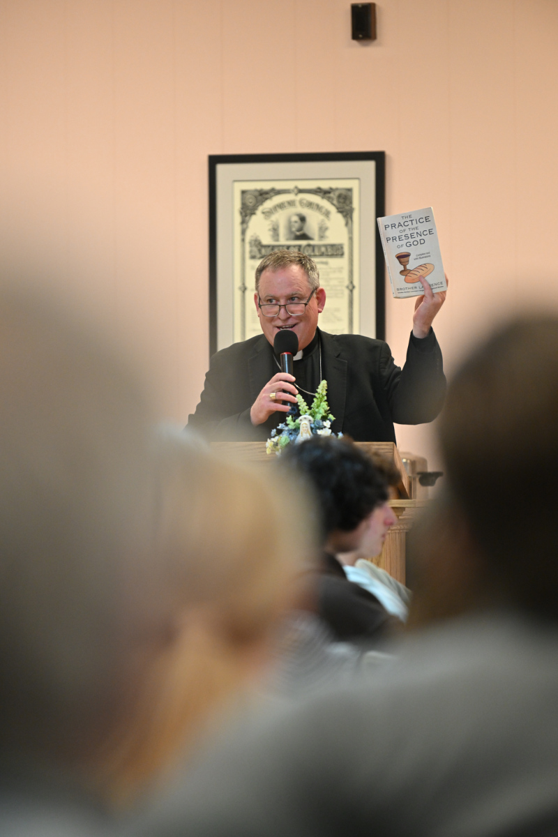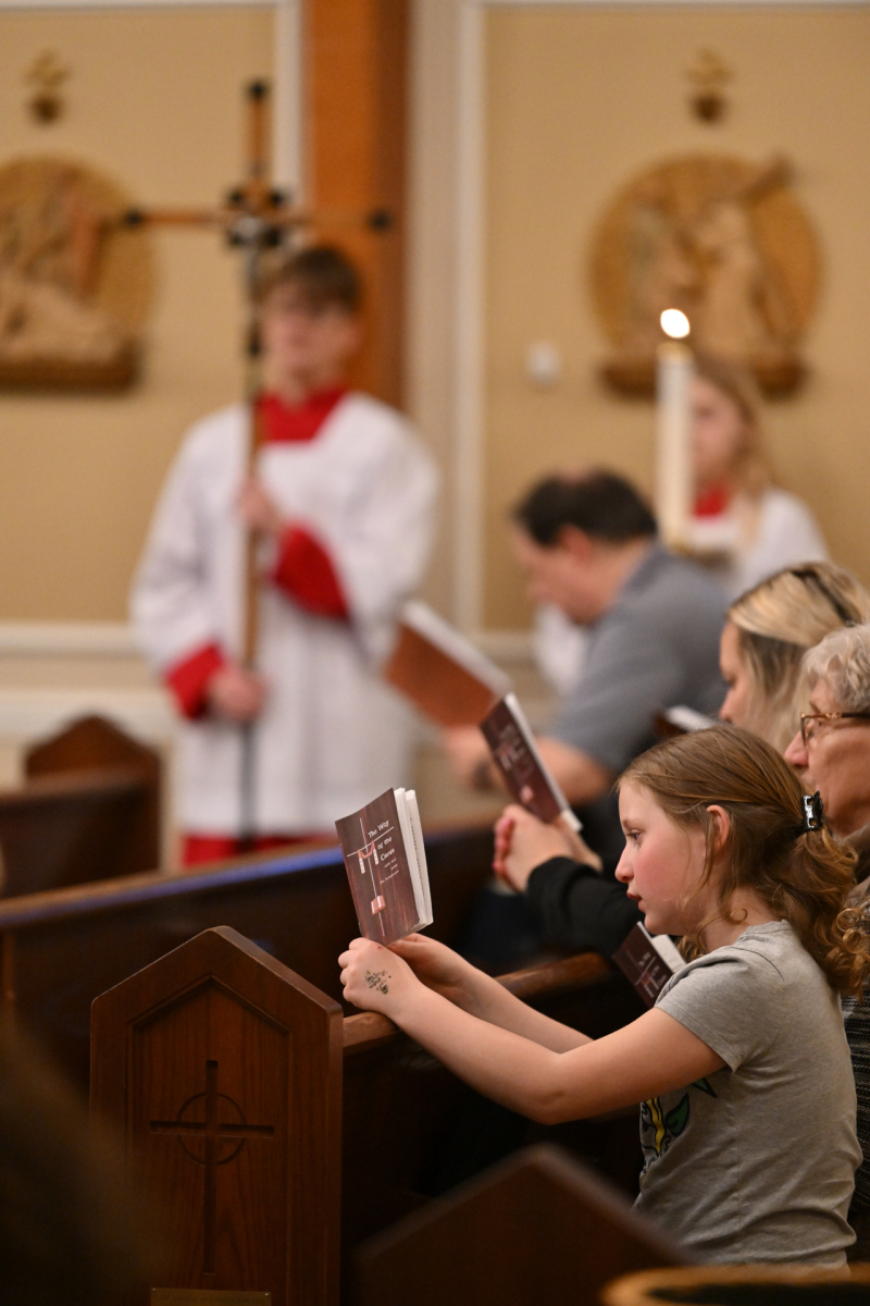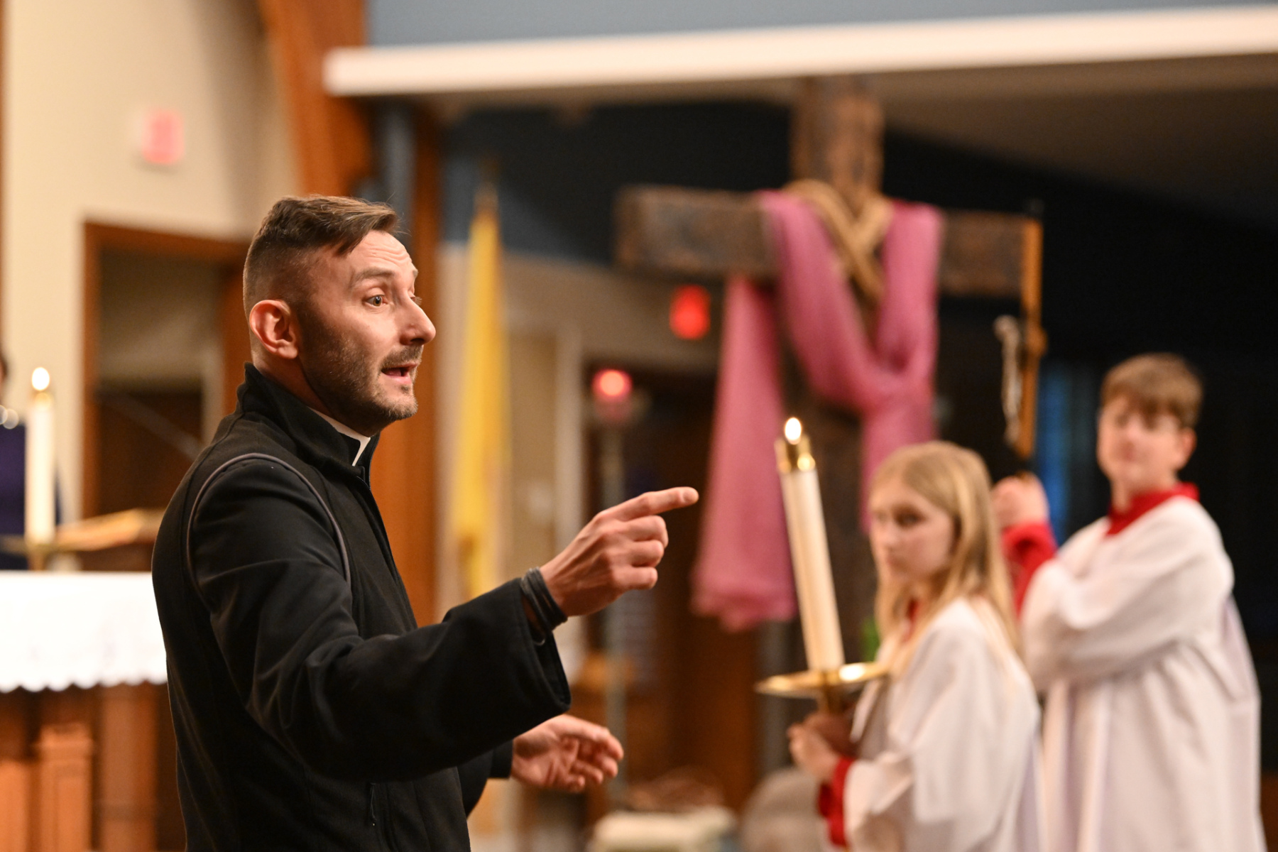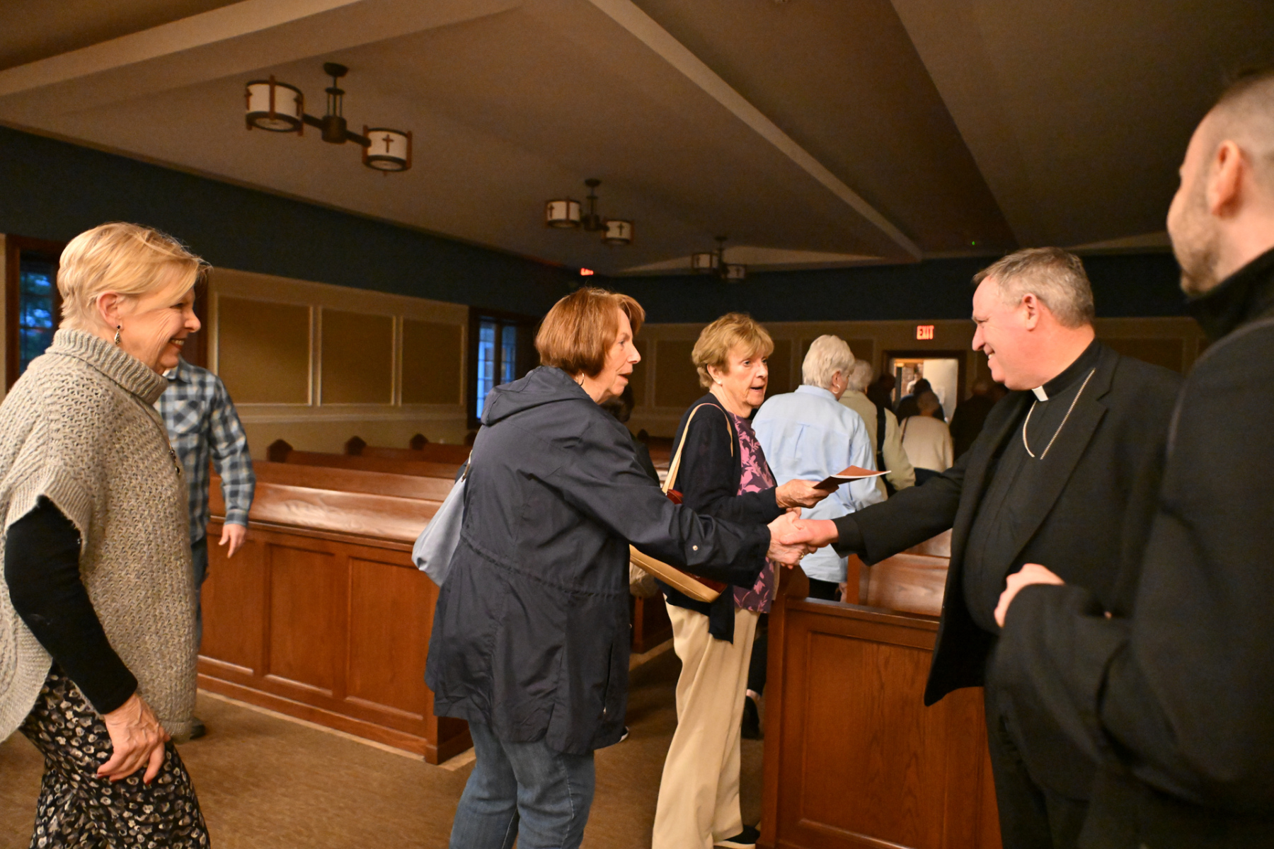 On the evening of March 11, Bishop Kevin J. Sweeney led Our Lady of the Mountain (OLM) Parish in the Long Valley neighborhood of Washington Township, N.J., in the Stations of the Cross in the church. A Lenten reflection by Bishop Sweeney and a bread and soup dinner followed the Stations of the Cross. Father Marcin Michalowski, OLM’s pastor, also participated in the Lenten event.