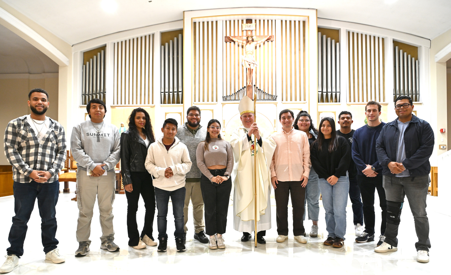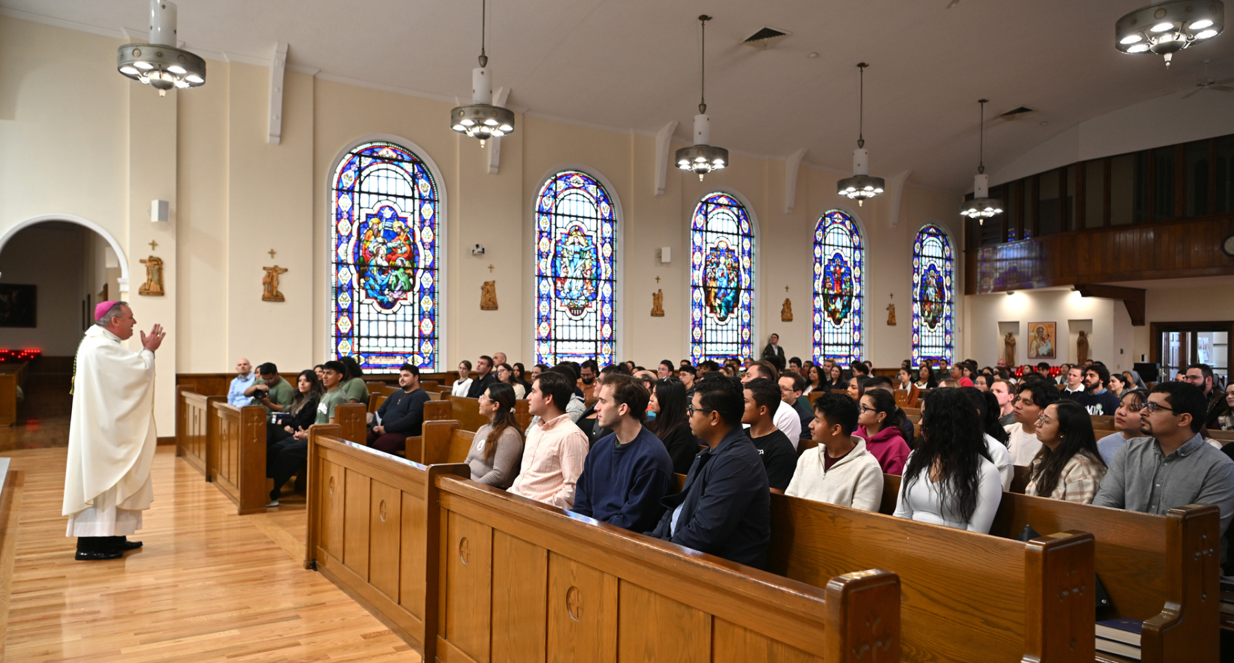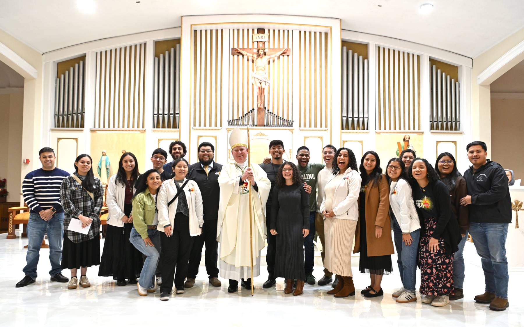 In his homily at the bilingual Mass, Bishop Sweeney encouraged young adults to believe and trust that a life of faith as a committed disciple is an exciting “adventure,” a word first used by St. Pope John Paul II, who said, “Life with Christ is an adventure.”