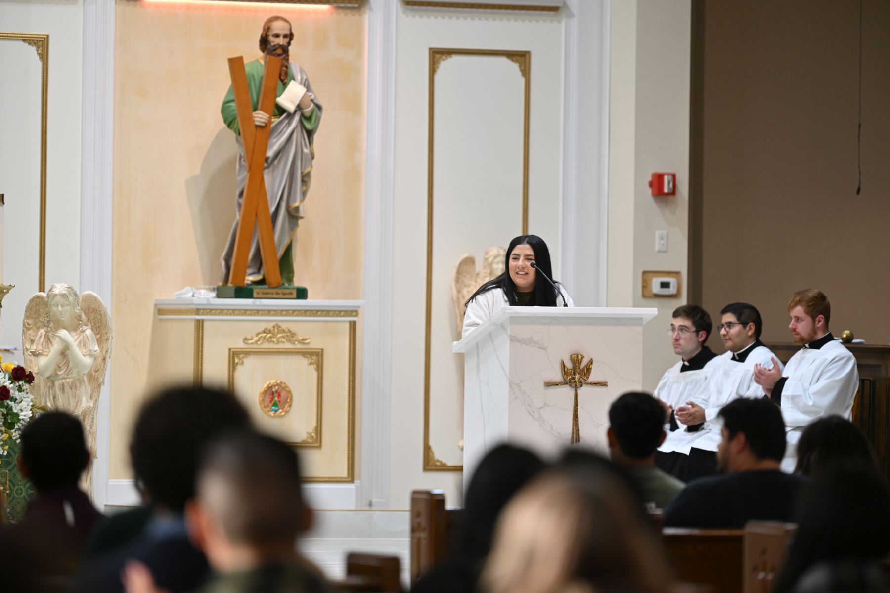In his bilingual talk before the Mass, Father Castaños noted that young people worry about all types of life decisions, including about college and career.