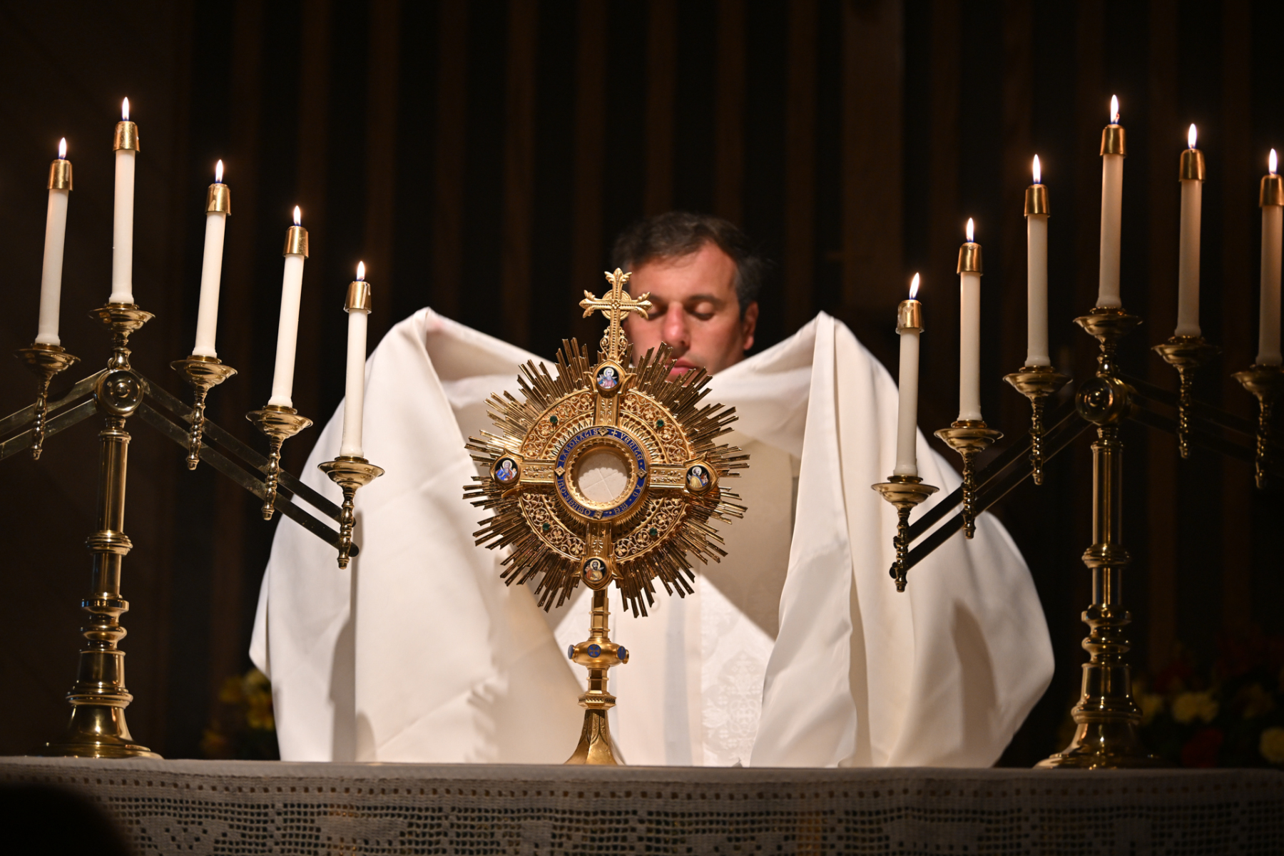 Our Lady Queen of Peace (OLQP) Parish in Branchville hosted Eucharistic adoration for youth, grades 7 to 12, on the evening of Aug. 23 in the church.